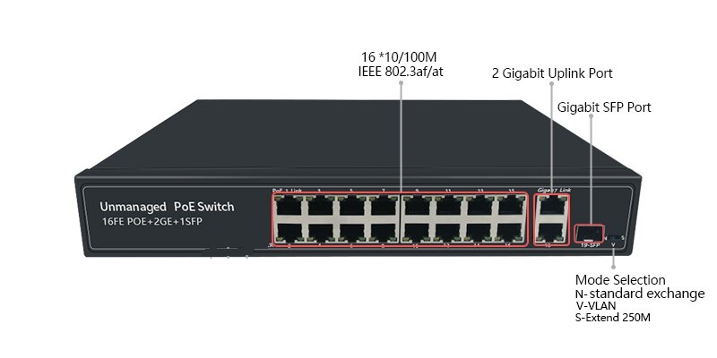 PS19M-162EES-200 16 PORT POE 10/100 2 PORT UPLİNK 10/100/1000 1 PORT SFP SWİTCH 200W
